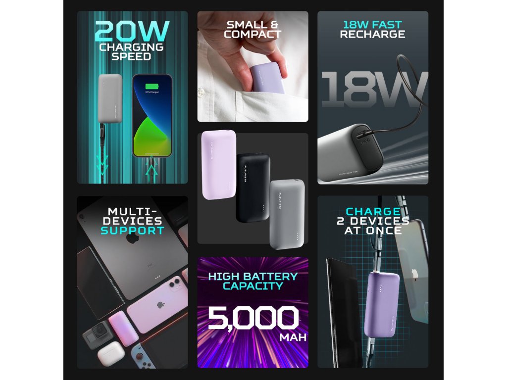 Pixy Mini Compact Power Bank je navržena pro maximální přenosnost a efektivitu, nabízející kompaktní design a vysokou kapacitu pro nabíjení zařízení na cestách.