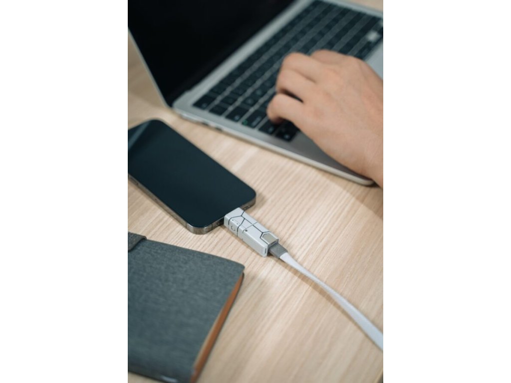 Zeus-X Go 6-v-1 je univerzální kabel, který poskytuje šest různých konektorů pro kompatibilitu s mnoha zařízeními, podporuje rychlé nabíjení a přenos dat.